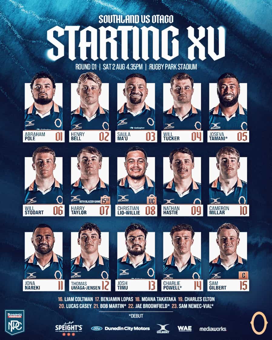 The Otago squad to face Southland in Round 1 of the 2025 Bunnings NPC has been named, with a blend of seasoned campaigners and fresh talent set to take the field at Rugby Park in Invercargill this Saturday. Captain Sam Gilbert will lead a side that includes five debutants in the matchday 23. Joseva Tamani and Charlie Powell will make their first appearances in the Otago jersey in the starting XV, while Bob Martin, Jae Broomfield and Sam Nemec-Vial are poised to debut off the bench. For Martin and Nemec-Vial, the match also marks their first-class rugby debuts — a significant milestone in their young careers.